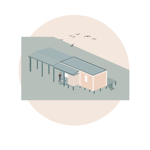 El encargo fue diseñar y construir tres refugios en la zona costera de Navidad cada refugio unidos a través del paisajismo y espacios exteriores en común, el requerimiento fue destacar las vistas y y proteger del viento predominante en la zona.