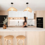 La cocina, antes compartimentada y oscura, fue completamente rediseñada en una paleta de blancos, negros y madera natural, logrando mayor luminosidad, amplitud y coherencia material con el resto de la vivienda.