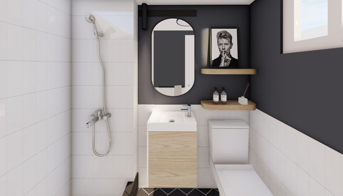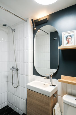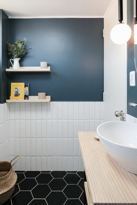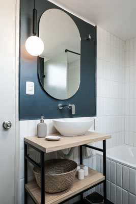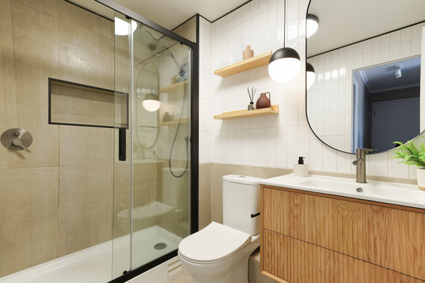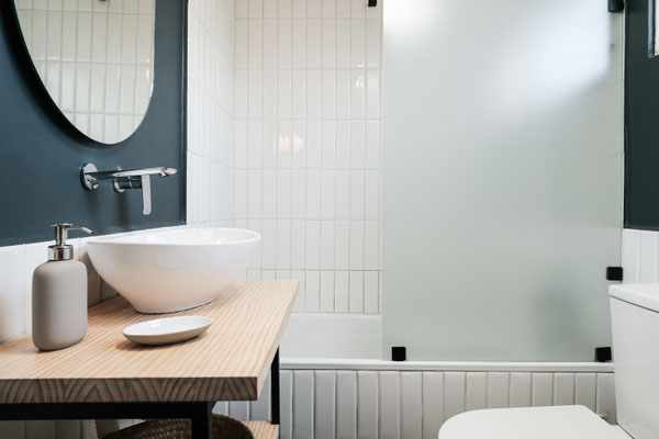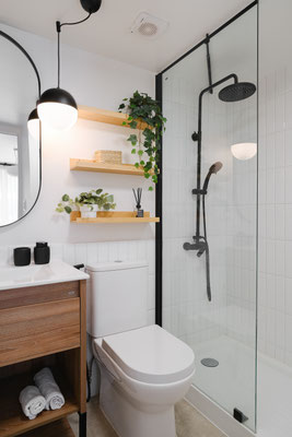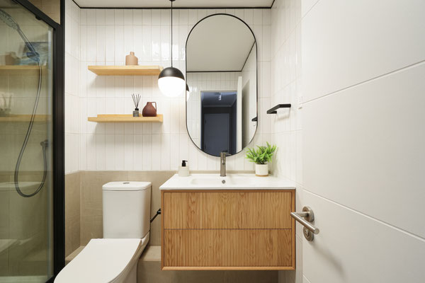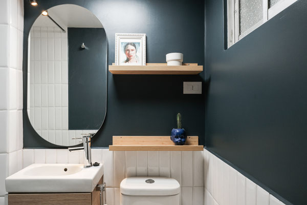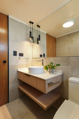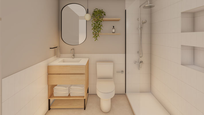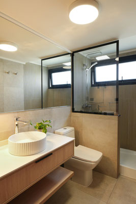 Proyecto de remodelación de dos baños originales de los años 90, con una propuesta que combina funcionalidad contemporánea y estética atemporal. Se eligió una paleta de colores neutros para maximizar la luminosidad y generar una atmósfera tranquila, complementada con acentos en azul que aportan frescura y profundidad visual. La madera, presente en mobiliario y detalles, actúa como elemento unificador y añade calidez al espacio. Se optimizó la distribución para mejorar la circulación y el aprovechamiento del espacio, incorporando iluminación indirecta, revestimientos de distintos formatos y griferías de líneas limpias que refuerzan la modernidad del conjunto.