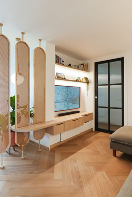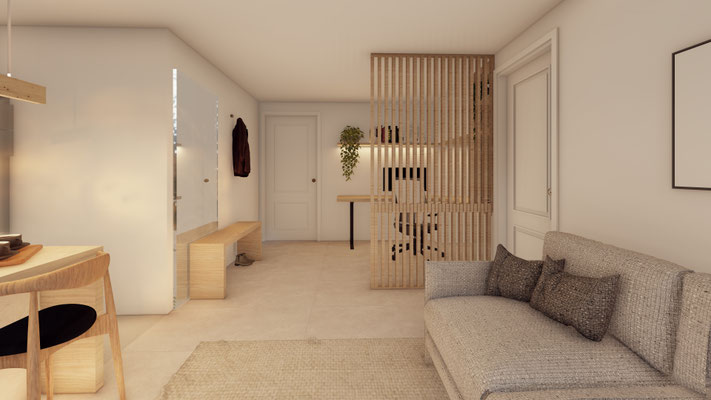 El proyecto nace de la idea de generar una atmosfera de habitación de hotel, y bajo este requerimiento se rearma la planta completa del departamento , eliminando muros abriendo vistas y reorganizando los espacios.