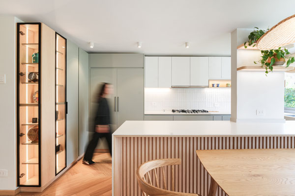 En este departamento de Villa Frei, uno de los conjuntos habitacionales más emblemáticos de Ñuñoa, actualizamos una distribución original de los años 60 para responder a nuevas formas de