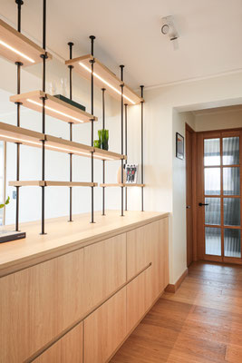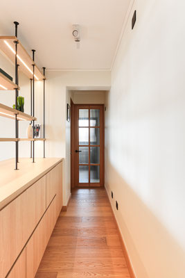 Se renovaron todos los pisos, optando por madera de roble, aportando calidez y continuidad visual. La paleta de colores neutra actúa como base atemporal, mientras que los acentos en madera natural aportan textura y carácter al ambiente.