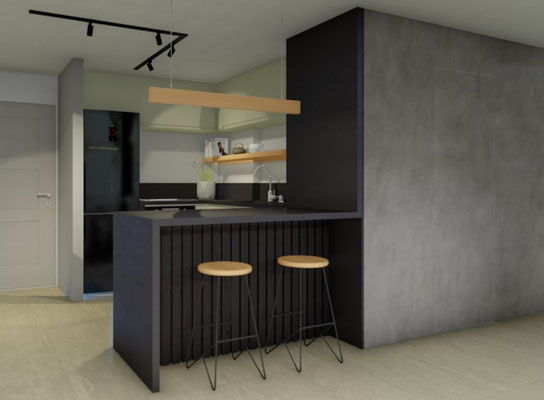 El encargo de este proyecto fue realizar una remodelación completa a un departamento , bajo el concepto de un espacio de trabajo pero a la vez un espacio de relajo, para esto diseñamos un espacio de cocina abierta con una isla a una altura de mesa de comedor para permanecer mas tiempo, un home office en el antiguo comedor, rediseñar living , baño y dormitorio.