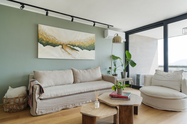 Proyecto de remodelación integral en departamento familiar, con una propuesta centrada en la funcionalidad, la continuidad espacial y la calidez material. La intervención incluyó la apertura de la cocina hacia el área social, configurando un concepto abierto que favorece la integración y la vida en común. Se diseñó mobiliario a medida para cocina, loggia y closets, optimizando almacenamiento y adaptándose a las necesidades del día a día. El cambio de pavimento por madera de roble aporta textura, naturalidad y una sensación acogedora, mientras que la paleta cromática —dominada por tonos neutros y un verde glaciar como acento— refuerza la identidad serena y contemporánea del espacio.