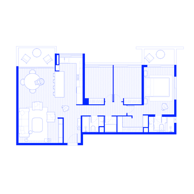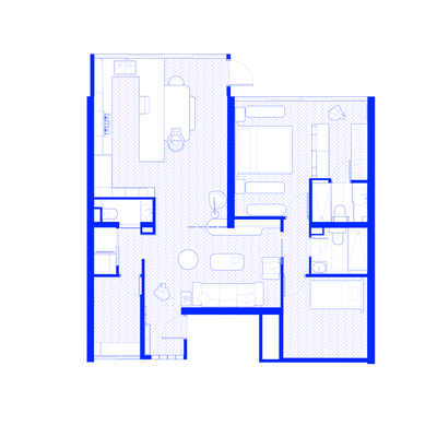 En este gran departamento, el encargo principal fue generar 3 espacios completamente individualizados, cada espacio con servicios y áreas de descanso.